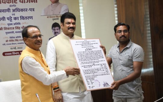 मुख्यमंत्री शिवराज सिंह चौहान ने 'मुख्यमंत्री भू-अधिकार' योजना के अंतर्गत हितग्राहियों को भू-अधिकार पत्र एवं स्थाई पट्टे का वितरण कर...
