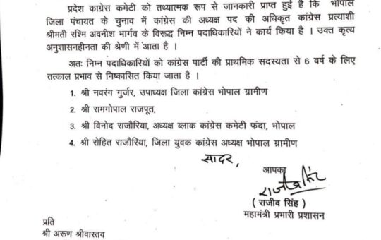 भोपाल। राजधानी में जिला पंचायत चुनाव में अपने 3 सदस्य गंवाकर बीजेपी से मात खाने वाली कांग्रेस ने अपनों पर...