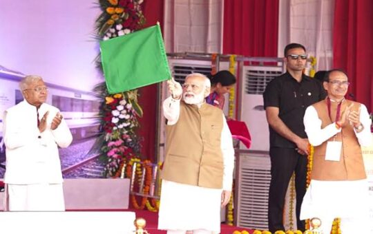 प्रधानमंत्री मोदी ने ‘वन्दे भारत’ ट्रैन को हरी झंडी दिखाकर किया रवाना