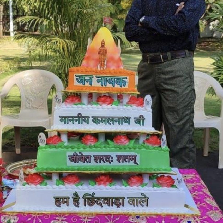 बीजेपी प्रवक्ता सलूजा ने कहा कि कमलनाथ के जन्मदिन पर छिन्दवाड़ा में राम मंदिर की आकृति वाला केक ख़ुद कमलनाथ द्वारा काटा गया था , जिस पर हनुमान जी की तस्वीर भी लगी हुई थी।