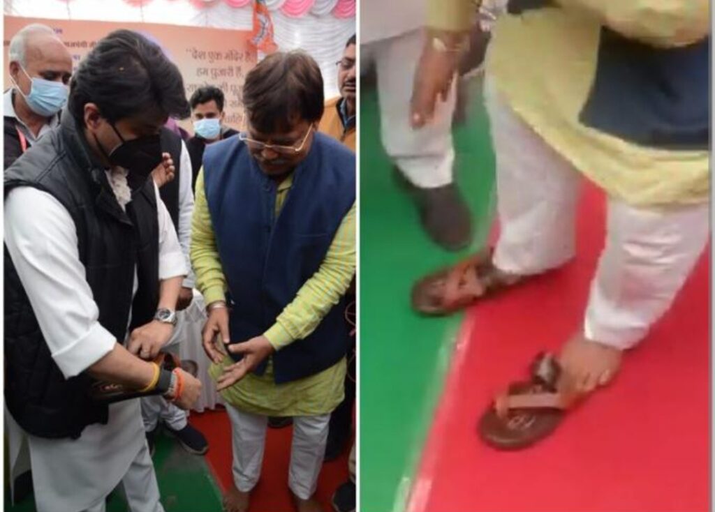 ज्योतिरादित्य सिंधिया ने अपने हाथों से किस मंत्री को पहनाई चप्पल?