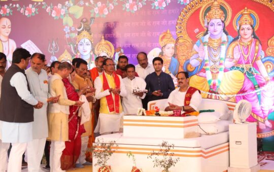 विश्व का कल्याण हो यह भारत ही कह सकता है सांवेर मे आयोजित रामकथा मे मुख्यमंत्री ने भजन भी गाया...
