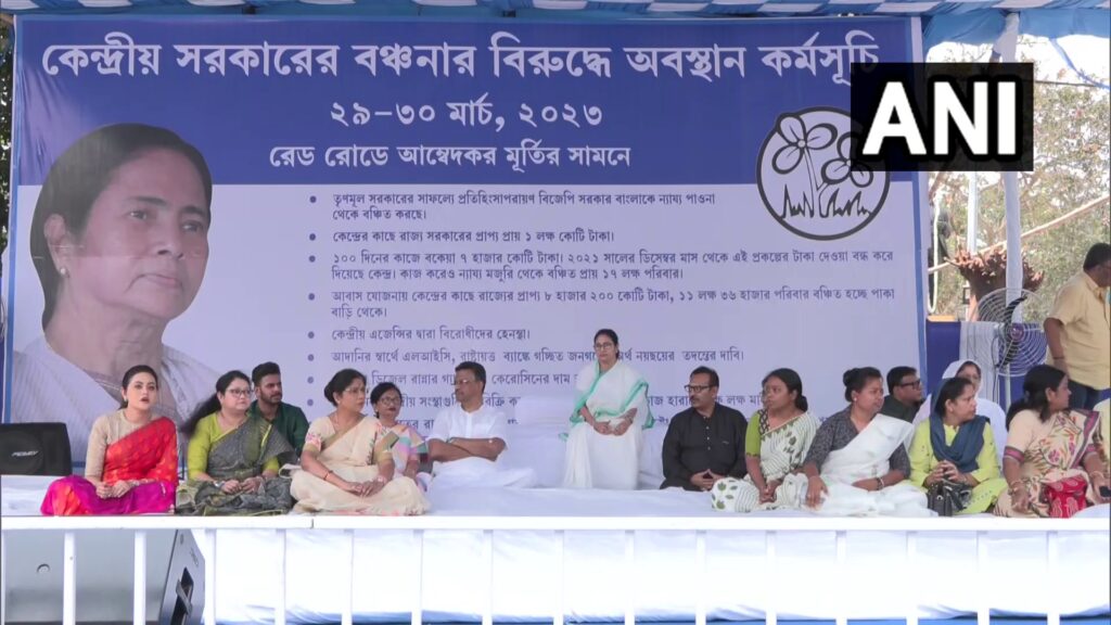 कोलकाता: पश्चिम बंगाल की मुख्यमंत्री ममता बनर्जी ने ‘100 दिन काम’ योजना और अन्य योजनाओं के लिए राशि जारी नहीं करने के चलते केंद्र सरकार के खिलाफ दो दिन के धरने पर बैठीं।