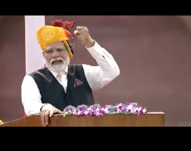 प्रधानमंत्री मोदी ने अपने संबोधन में कहा कि मैं 77वें स्वतंत्रता के अवसर पर भारत के स्वतंत्रता संग्राम में अपना योगदान देने वाले सभी बहादुरों को श्रद्धांजलि अर्पित करता हूं।इस बार प्राकृतिक आपदा ने देश के कई हिस्सों में अकल्पनीय संकट पैदा कर दिया है। मैं इसका सामना करने वाले सभी परिवारों के प्रति संवेदना व्यक्त करता हूं।इसी के साथ प्रधानमंत्री ने मणिपुर का जिक्र करते हुए कहा, ‘देश मणिपुर के लोगों के साथ है, मणिपुर के लोगों ने कुछ दिनों से जो शांति बनाए रखी है, उसको आगे बढ़ाए। शांति से ही समाधान का रास्ता निकलेगा। केंद्र और राज्य की सरकार मिलकर उन समस्याओं के समाधान के लिए भरपूर प्रयास कर रही है और करती रहेगी।’आज हमारे पास जन सांख्यिकी, लोकतंत्र और विविधता है – ये तीनों मिलकर देश के सपनों को साकार करने की क्षमता रखते हैं।पीएम मोदी ने कहा 2014 में जब हम सत्ता में आए तो वैश्विक आर्थिक व्यवस्था में हम 10वें स्थान पर थे। आज 140 करोड़ भारतीयों के प्रयास से हम वैश्विक आर्थिक व्यवस्था में पांचवें स्थान पर पहुंच गए हैं। यह ऐसे ही नहीं हुआ  जब भ्रष्टाचार के राक्षस ने देश को अपनी गिरफ्त में ले लिया था तब हमने इसे रोका और एक मजबूत अर्थव्यवस्था बनाई।देश में अवसरों की कोई कमी नहीं है। देश में अनंत अवसर प्रदान करने की क्षमता है।आज भारत को G20 शिखर सम्मेलन की मेजबानी का अवसर प्राप्त हुआ है। बीते वर्ष में जिस प्रकार भारत के कोने-कोने में G20 के अनेक आयोजन हुए, उससे दुनिया को भारत के सामान्य जन के सामर्थ्य, भारत की विविधता का परिचय हुआ है।पीएम मोदी ने कहा कि हमने देश में महंगाई पर काबू पाने के लिए कई कदम उठाए हैं और इस दिशा में हमारा प्रयास जारी रहेगा।सरकार अगले महीने पारंपरिक कौशल वाले लोगों के लिए 13,000 से 15,000 करोड़ रुपए के आवंटन के साथ विश्वकर्मा योजना शुरू करेगी।25 साल से देश में चर्चा चल रही थी कि नया संसद भवन बनेगा। यह मोदी है जिसने समय के पहले संसद बनाकर रख दिया। यह एक ऐसी सरकार है जो काम करती है, जो निर्धारित लक्ष्यों को पूरा करती है। ये नया भारत है। यह एक ऐसा भारत है जो आत्मविश्वास से भरा है…ये भारत ना रुकता है, ना थकता है, ना हंफ्ता है और ना ही हारता है।यह मोदी की गारंटी है कि भारत अगले 5 वर्षों में दुनिया की शीर्ष तीन अर्थव्यवस्थाओं में अपनी जगह बनाएगा।पीएम ने कहा मेरा दृढ़ विश्वास है कि 2047 में जब देश आजादी के 100 वर्ष मनाएगा तो देश एक विकसित भारत होगा। मैं यह बात अपने देश की क्षमता और उपलब्ध संसाधनों के आधार पर कहता हूं…लेकिन समय की मांग तीन बुराइयों से लड़ने की है – भ्रष्टाचार, वंशवाद और तुष्टिकरण।आज परिवारवाद और तुष्टीकरण ने हमारे देश को बर्बाद कर दिया है।भ्रष्टाचार, परिवारवाद और तुष्टिकरण, हमें इन त
