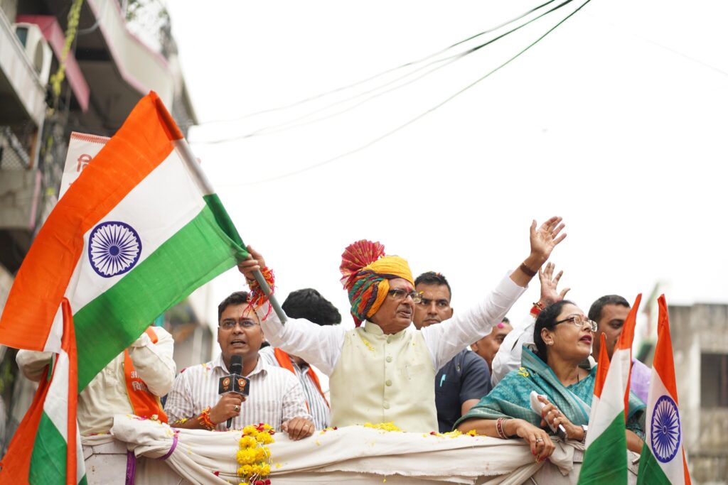 भोपाल- केन्द्रीय कृषि मंत्री शिवराज सिंह चौहान ने बुधवार को अपने संसदीय क्षेत्र विदिशा-रायसेन में तिरंगा यात्रा और स्वदेशी मार्च निकाला। वहीं शिवराज सिंह ने यात्रा से पहले विदिशा में स्वयं-सहायता समूह की बहनों के साथ रक्षाबंधन भी मनाया। तिरंगा यात्रा और स्वदेशी मार्च विदिशा के माधवगंज चौराहे से प्रारंभ होकर रायसेन के महामाया चौक पर समाप्त हुई। इस बीच अलग-अलग स्थानों पर आमजन ने केन्द्रीय मंत्री शिवराज का भव्य स्वागत किया। साथ ही शिवराज सिंह ने भी आम जनता से स्वतंत्रता दिवस पर अपने-अपने घरों पर झंडा फहराने की अपील की और स्वदेशी अपनाने का संकल्प दिलाया। इस दौरान शिवराज सिंह ने कहा कि, हमारा राष्ट्रध्वज देश का गौरव और सम्मान है। तिरंगे को हाथ में लेकर ही आजादी की लड़ाई में लाखों लोगों ने देश की स्वतंत्रता के लिए अपनी कुर्बानियां दी हैं और अब फिर स्वतंत्रता दिवस आ रहा है, हमारा राष्ट्रीय पर्व… बहनों और भाइयों अपने राष्ट्रीय पर्व को हम धूमधाम से मनाएं और अपने घर भी तिरंगा फहराएं।
