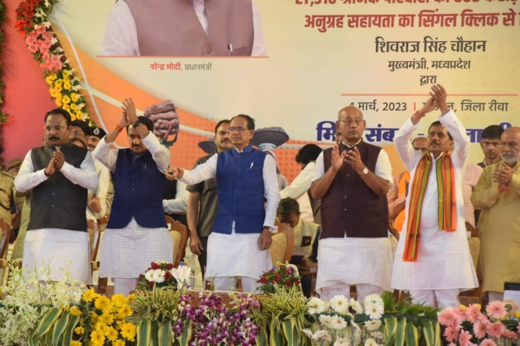 मुख्यमंत्री शिवराज मऊगंज में जन-कल्याण (संबल) योजना 2.0 में प्रदेश के 27 हजार 310 श्रमिक परिवारों के खातों में 605 करोड़ रूपये की अनुग्रह राशि सिंगल क्लिक से अंतरित की। मुख्यमंत्री ने 738 करोड़ 92 लाख रूपये के विकास कार्यों का भूमि-पूजन और लोकार्पण भी किया।