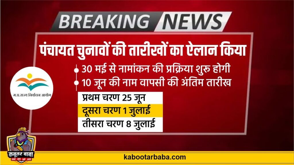 BIG BREAKING : MP में पंचायत चुनाव की तारीखों का हुआ ऐलान, तीन चरणों में होगा चुनाव