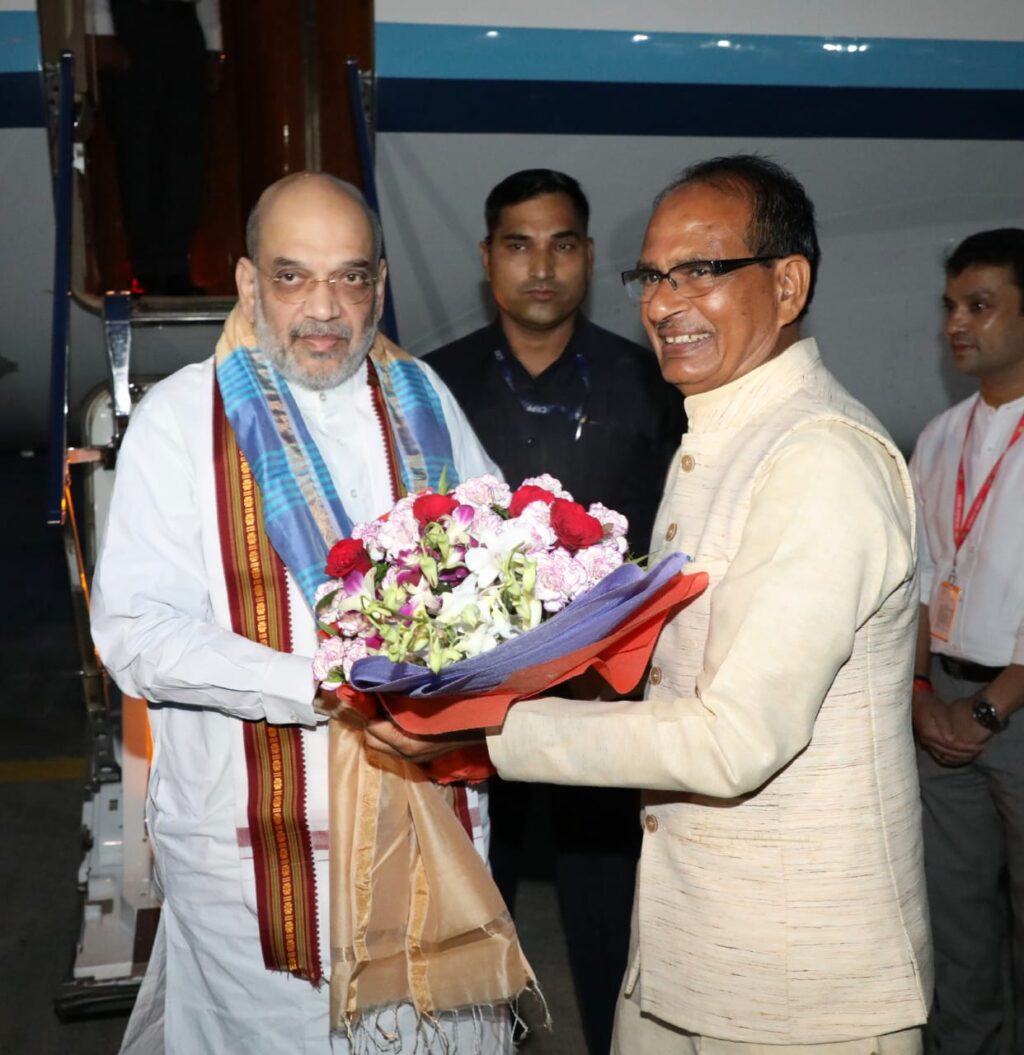 गृहमंत्री अमित शाह के भोपाल आगमन पर CM शिवराज समेत भाजपा नेताओं ने स्वागत किया