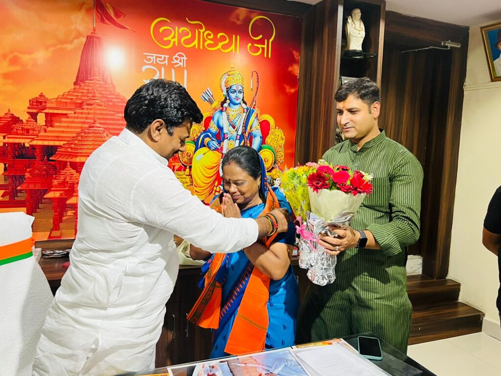 BJP महापौर प्रत्याशी मालती राय ने विधायक रामेश्वर शर्मा से उनके कार्यालय पहुँचकर की भेंट