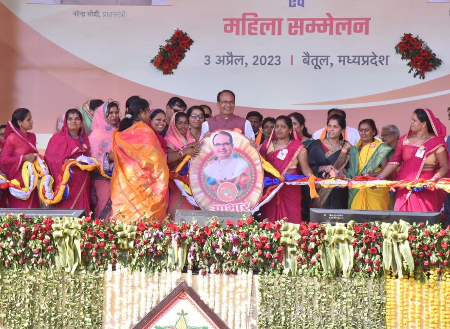 बैतूल में आयोजित महिला सम्मेलन एवं मुख्यमंत्री भू-अधिकार पत्र वितरण कार्यक्रम में सीएम श्री शिवराज सिंह चौहान जी ने बैतूल की बहनों को संबोधित करते हुए कहा कि बैतूल के इतिहास में इतनी बढ़ी संख्या में बहनें कभी नहीं आईं जितनी यहाँ आईं हैं, आज मैं यहाँ क्रांति का शंखनाद करने आया हूँ। चारों तरफ मैं देख रहा हूँ आज बैतूल की धरती पर मेरी बहनों का समुद्र उमड़ा हैं, उन सभी को मेरा प्रणाम।यह कार्यक्रम कोई कर्मकांड नहीं है,मैं सामाजिक क्रांति का शंखनाद कर रहा हूँ।