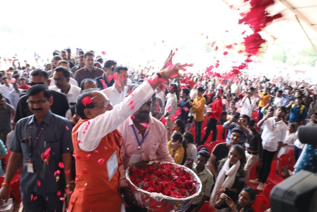 भोपाल। एमपी के सीएम शिवराज सिंह चौहान ने शुक्रवार को 12वीं की परीक्षा में 75% से अधिक अंक लाने वाले मेधावी विद्यार्थियों का पुष्प वर्षा कर सम्मान किया और 25-25 हजार रूपए लैपटॉप खरीदने के लिए 91 हजार 498 बच्चों को ऑनलाइन वितरित किए। सीएम ने बच्चों को बेहतर भविष्य के लिए जीवन में क्या बनना है यह लक्ष्य निर्धारित कर पढ़ाई करने की बात कही। कार्यक्रम में मंत्री इंदर सिंह परमार, महापौर मालती राय समेत कई लोग मौजूद रहे।