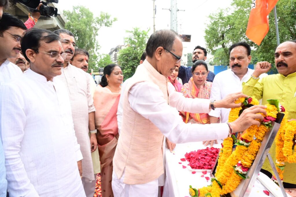 CM शिवराज और भाजपा नेताओं ने श्यामाप्रसाद मुखर्जी की प्रतिमा पर माल्यार्पण किया