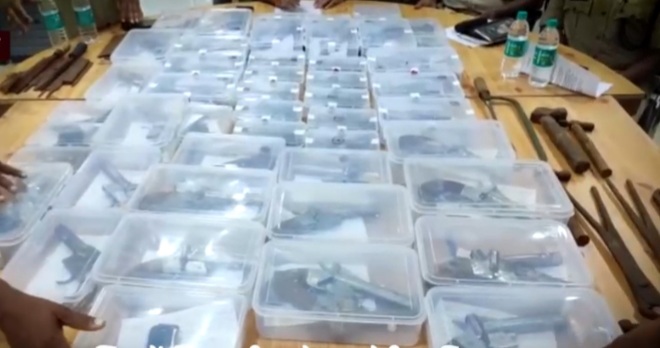 बड़वानी पुलिस को गुरुवार दोपहर सेंधवा और वरला के उमरटी गांव में कुछ लोगों द्वारा अवैध हथियार रखे होने की सूचना मिली थी। एसपी दीपक कुमार शुक्ला के नेतृत्व में पुलिस ने तत्काल दबिश देकर जंगल से तीन सिकलीगारों को पकड़ा। पुलिस ने आरोपियों के पास से 51 देशी पिस्टल के साथ ही अर्धनिर्मित कट्टे व अन्य सामान भी बरामद किया है। आरोपियों की पहचान ग्राम उमर्टी, बड़वानी निवासी बलजीत पिता ख्याल सिंह, राजेन्द्र सिंह पिता प्रितम सिंह और पर्वत सिंह के रूप में हुई है। सीएम शिवराज सिंह चौहान ने ट्वीट कर इस कार्रवाई के लिए बड़वानी पुलिस को बधाई दी है। साथ ही उन्होंने पुलिसकर्मियों को कहा कि वह इस प्रकार की कार्रवाई करते हुए मध्यप्रदेश में शांति एवं कानून व्यवस्था बनाए रखें और देश को सर्वश्रेष्ठ राज्य बनाने में योगदान दें।