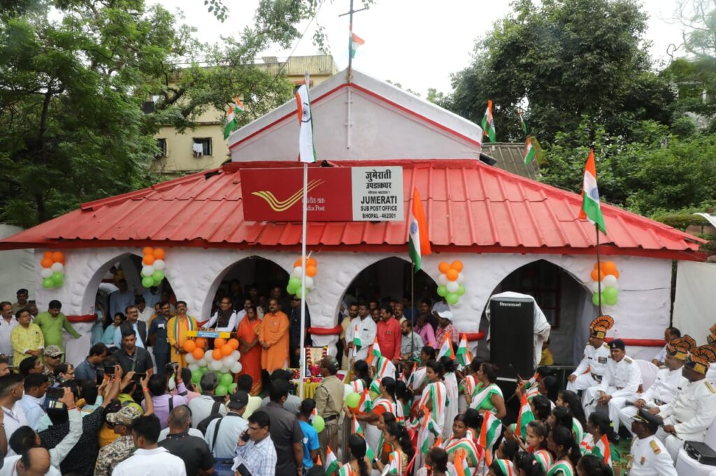भोपाल विलीनीकरण आंदोलन के समय के ऐतिहासिक जुमेराती पोस्टआफिस पर सीएम शिवराज ने फहराया तिरंगा