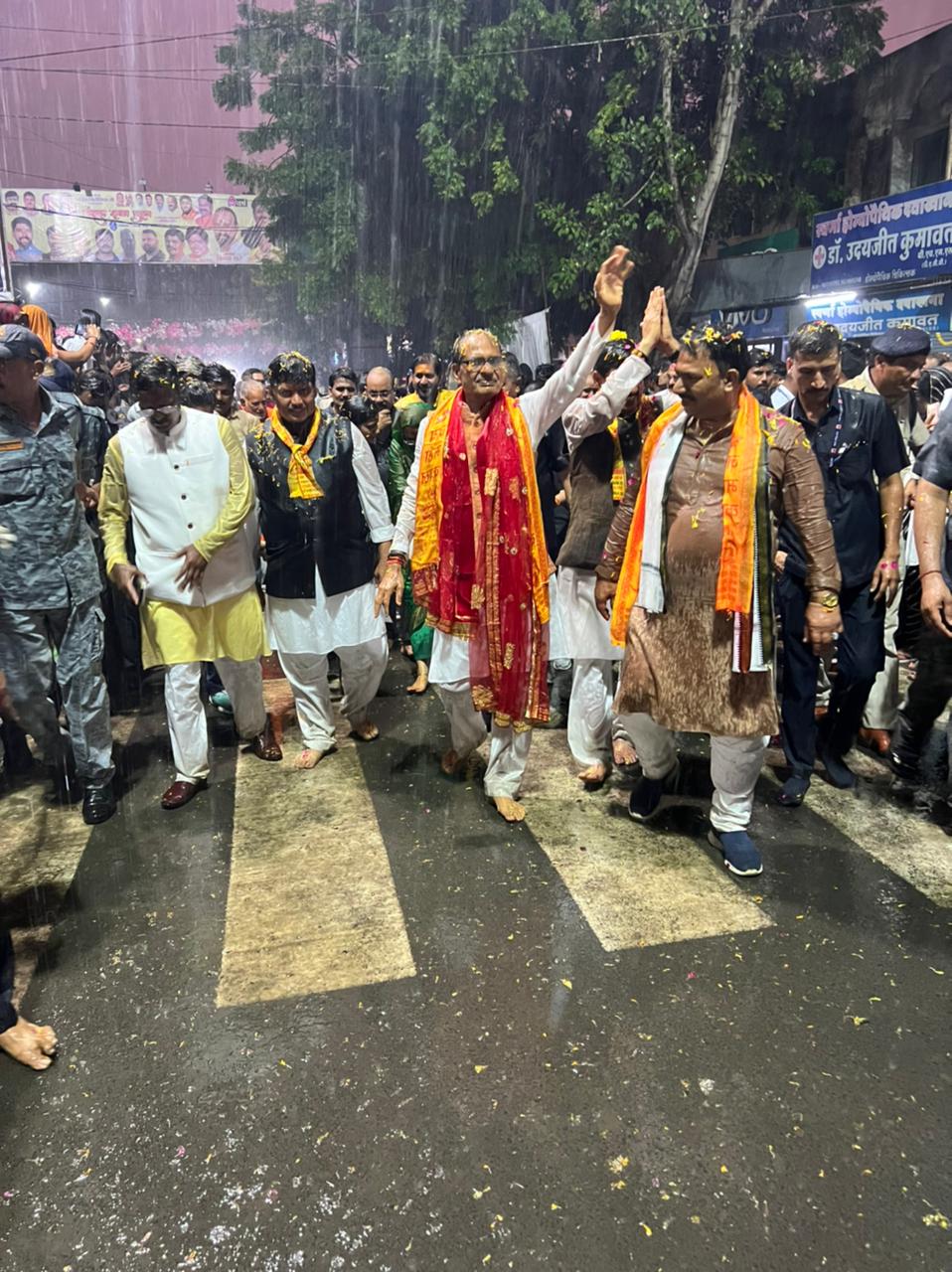 तेज बारिश में बाबा महाकाल की दशहरा सवारी में शामिल हुए सीएम शिवराज, भक्तों के साथ चले नंगे पांव