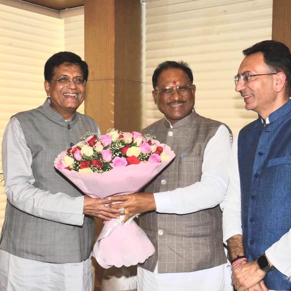 केन्द्रीय मंत्री पीयूष गोयल के साथ CM विष्णु देव साय ने की मुलाकात, छत्तीसगढ़ के औद्योगिक विकास व निवेश के प्रस्तावों पर आधिकारियों को दिए निर्देश