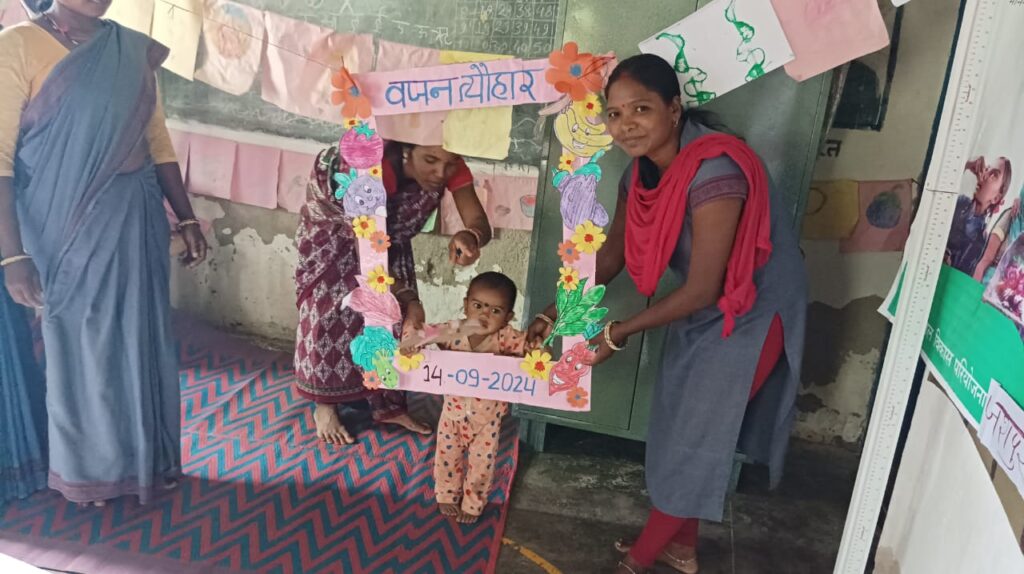 सभी आंगनबाड़ी केंद्रों में भी समूह बैठक में वजन त्यौहार के बारे में चर्चा की जा रही है। ग्रामीण महिलाओं से चर्चा के दौरान 0 से 06 साल के बच्चे, किशोरी बालिकाओं की खान-पान और स्वास्थ्य देखभाल के बारे में बताया जा रहा है। गर्भवती महिलाओं को पौष्टिक आहार भोजन में शामिल करने का आग्रह किया जा रहा है। जशपुर जिले के लगभग 4315 आंगनबाड़ी केंद्रों में पोषण माह अभियान चलाया जा रहा है । जिसका लाभ जिले के 76 हजार से अधिक बच्चे लाभान्वित हो रहे हैं।