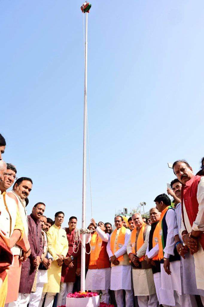 भाजपा के स्थापना दिवस पर प्रदेश कार्यालय में हुआ ध्वजारोहण