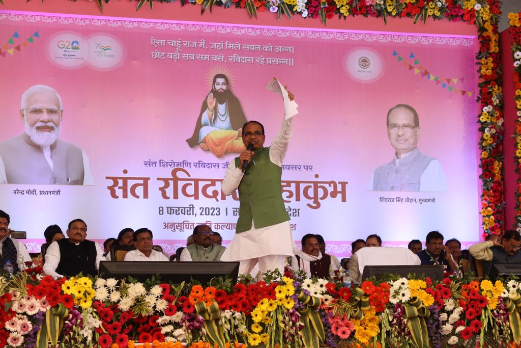 सागर में आयोजित संत रविदास महाकुंभ कार्यक्रम में मुख्यमंत्री शिवराज ने बड़ी घोषणा करते हुए कहा कि हम यह फैसला कर रहे हैं कि यहां संत रविदास जी महाराज का भव्य मंदिर 100 करोड़ रुपए की लागत से बनाया जाएगा। हम अद्भुत मंदिर बनाएंगे। ये उनका समाज पर उपकार है उनका व्यक्तित्व, कृतृत्व उन्होंने जो समाज को दिया है उससे कोई उऋण नहीं हो सकते।