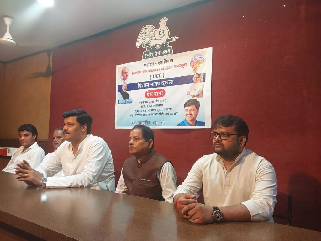 इंदौर-भाजपा की केंद्र सरकार द्वारा समान नागरिक संहिता कानून(UCC) के पक्ष में देशभर में आम जनता से राय ली जा रही है। इसी कड़ी में देशभर की सोशल मीडिया पर समान नागरिक संहिता। कानून (यूसीसी) को लेकर भाजपा की केंद्र सरकार के पक्ष में पूरा समर्थन दिया जा रहा है। हालाकि कुछ विघ्नसंतोषी इस नए कानून को लेकर इसका विरोध कर रहे है। लेकिन इंदौर की हिंदू संस्कृति मंच से जुड़े सैकड़ों कार्यकर्ताओ ने समान नागरिक संहिता कानून का पूर्ण समर्थन करते हुए शहर के बड़ा गणपति चौराहा से एमजी रोड तक एक विशाल मानव श्रृंखला बनाई जा रही है। जिसका प्रतिनिधित्व भारतीय जनता युवा मोर्चा के पूर्व प्रदेश अध्यक्ष और हिंदू संस्कृति रक्षा मंच के संयोजक अमरदीप मौर्य कर रहे है। उक्त जानकारी देते हुए हिंदू संस्कृति रक्षा मंच के मीडिया समन्वय वेदांत शुक्ला ने बताया की दिनांक 26 जुलाई 2023 दिन बुधवार को सुबह 9 बजे से 9.30 बजे तक बड़ा गणपति चौराहा से एमजी रोड की और एक विशाल मानव श्रृंखला बनाई जा रही है। मानव श्रृंखला बनाने के पूर्व बड़ा गणपति चौराहा पर सुबह 8 हिंदू संस्कृति रक्षा मंच से जुड़े कार्यकर्ता और आमजन इकट्ठा होंगे। इस अवसर पर पूर्व भाजयुमो प्रदेश अध्यक्ष अमरदीप मौर्य सहित अन्य वरिष्ठ पदाधिकारी मौजूद रहने वाले है। हिंदू संस्कृति रक्षा मंच के मीडिया समन्वय वेदांत शुक्ला ने बताया की इस दौरान मौजूदा आमजन समान नागरिक संहिता कानून (यूसीसी)को अपना समर्थन देते हुए बड़ी संख्या में मौजूद रहने वाले है। इधर चर्चा में हिंदू संस्कृति रक्षा मंच संयोजक अमरदीप मौर्य ने कहा कि एक देश-एक विधान को लेकर केंद्र सरकार को भारी समर्थन मिल रहा है और इसी के चलते बुधवार 26 जुलाई को बड़ा गणपति चौराहा पर भारी संख्या में आमजन केंद्र सरकार के इस नए कानून का पक्ष लेते हुए मानव श्रृंखला बनाएंगे।