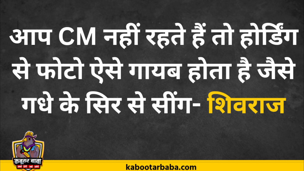 बता दें, शिवराज सिंह चौहान एक कार्यक्रम में भाषण दे रहे थे। इसी दौरान उन्होंने अपने अंतर की व्यथा लोगों से कह डाली। शिवराज सिंह चौहान ने कहा कि लोग रंग देखते हैं अगर आप सीएम नहीं रहे तो होर्डिंग से आपका फोटो भी गायब हो जाता है।शिवराज सिंह चौहान ने कहा कि अगर आप सीएम नहीं रहते हैं तो होर्डिंग से फोटो ऐसे गायब होता है जैसे गधे के सिर से सींग….