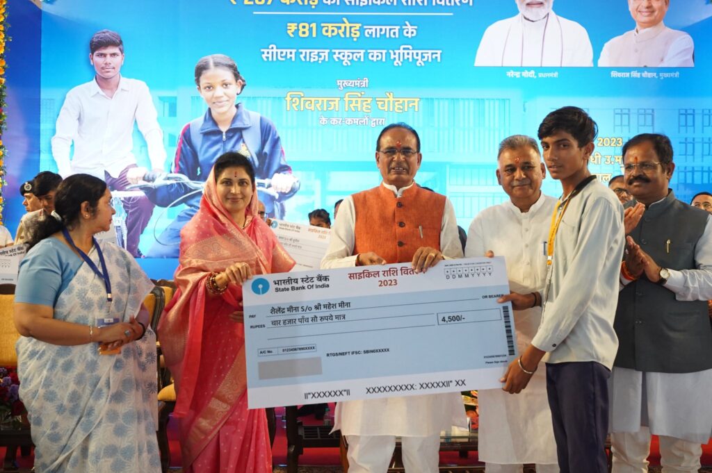 भोपाल।मध्यप्रदेश के मुख्यमंत्री शिवराज सिंह ने राजधानी भोपाल के भेल क्षेत्र में आयोजित कार्यक्रम में ₹81 करोड़ की लागत से बनने वाले सीएम राइज शासकीय महात्मा गांधी उच्चतर माध्यमिक विद्यालय और भेल के भवन का भूमिपूजन किया। कार्यक्रम में स्कूल शिक्षा मंत्री इन्दर परमार, विधायक कृष्णा गौर और विभागीय अधिकारी सहित विद्यार्थी और उनके माता पिता भी उपस्थित रहें।कार्यक्रम में सीएम शिवराज ने स्कूली विद्यार्थियों को साइकिल खरीदने के लिए विद्यार्थियों के बैंक खाते में 207 करोड़ रुपये की राशि सिंगल क्लिक के जरिए ट्रांसफर की। इस साल राज्य के 4 लाख 60 हजार विद्यार्थियों को यह राशि दी गई है।मुख्यमंत्री ने कहा कि मेरे बेटा-बेटियों, एक जमाना था, जब मध्यप्रदेश में स्कूल की बिल्डिंग ही नहीं हुआ करती थी,पेड़ों के नीचे हम लोग पढ़ाई करते थे तब मेने सोचा की जब मैं मुख्यमंत्री बना, तो बच्चों के पढ़ने के लिए बेहतर स्कूल बनेंगे ताकि हमारे बच्चे आगे बढ़ सकें और हमारी सरकार ने बच्चों को बेहतर स्कूल बिल्डिंग और शिक्षा व्यवस्था उपलब्ध कराई।सीएम ने कहा बच्चें भगवान रूप होते है, बच्चें मन के सच्चे होते है वो एक गीली माटी की तरह होते हैं जिस रूप में ढालोगे ढल जाएंगे इसलिए बच्चों को अच्छी शिक्षा मिले क्योंकि अच्छी शिक्षा बच्चों को बहुत ऊंचे स्थान पर ले जाती है, सफल बनाती है।सीएम ने कहा कि सीएम राइज स्कूल आधुनिक सुविधाएं उपलब्ध करा रहे हैं, ताकि गरीब के बेटा-बेटी भी खूब पढ़ें और आगे बढ़ें।12वीं कक्षा में 75% अंक लाने वाले बेटे-बेटियों को हम लैपटॉप तो देते ही हैं, अब 12वीं में अपने स्कूल में टॉप करने वाले बेटा-बेटी को स्कूटी दी जायेगी।सीएम ने कहा मेरे बेटा-बेटियों…तुम्हारी मेहनत से अगर तुम्हारा एडमिशन मेडिकल कॉलेज में, इंजीनियरिंग में, IIT में, IIM में, लॉ कॉलेज में या फिर किसी बड़े संस्थान में होगा, तो फीस कितनी भी हो, वो तुम्हारे माता-पिता नहीं, तुम्हारा मामा भरवाएगा।मेरे बच्चों, संपूर्ण मध्यप्रदेश मेरा परिवार है।मैं मुख्यमंत्री बनकर सरकार नहीं, परिवार चला रहा हूँ।