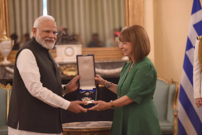 PM मोदी को ग्रीस राष्ट्रपति ने किया सम्मानित।