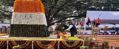 बलिदानियों के सम्मान में आयोजित कार्यक्रम की सलामी प्रमुख सचिव इकबाल सिंह बैंस ने ली। शहीद स्मारक प्रांगण में 16 बलिदानी पुलिस अधिकारियों और जवानों की फोटो को डिस्प्ले में रखा गया। यहां एक-एक कर सभी शहीद पुलिसकर्मियों के योगदान को याद किया गया। कार्यक्रम में डीजीपी सुधीर सक्सेना, पुलिस कमिश्नर मकरंद देउस्कर समेत तमाम अधिकारी मौजूद रहे। कार्यक्रम में किसी कारण से राज्यपाल मंगूभाई पटेल नहीं पहुंच सके जिसके बाद पुलिस महानिरीक्षक इरशाद वलि ने राज्यपाल का संदेश पढ़कर लोगों को सुनाया। कार्यक्रम में गुना में शहीद हुए पुलिसकर्मी नीरज भार्गव की पत्नी अपनी 6 माह की बेटी को गोद में लेकर आई। उन्होंने बताया कि मेरा 12 साल का बड़ा बेटा है, सरकार से मांग है कि बेटा जब बालिग हो तो उसे एएसआई के पद पर नियुक्ति मिले। वहीं 14 मई को गुना के आरोन में शिकारियों से हुई मुठभेड़ में शहीद हुए सब इंस्पेक्टर राजकुमार जाटव की पत्नी रूबी जाटव ने देवर को अनुकंपा नियुक्ति देने की मांग की।
