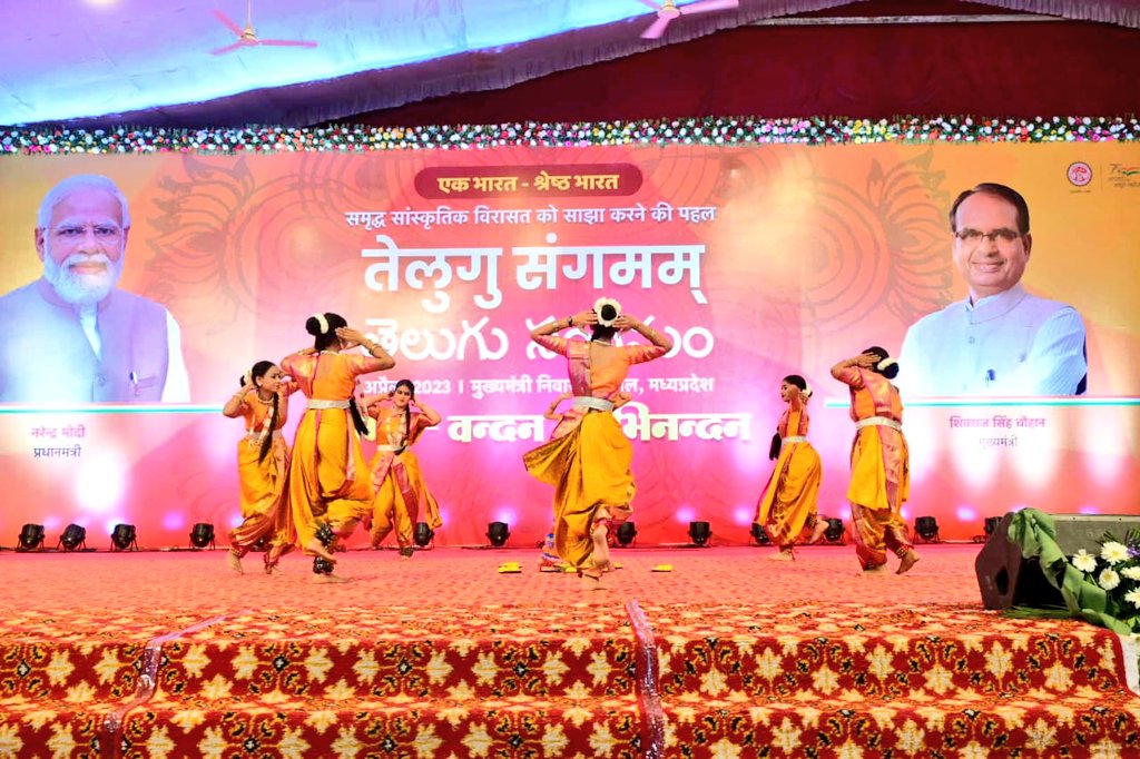 प्रारंभ में मुख्यमंत्री चौहान ने पुष्प-वर्षा कर तेलुगु भाषी भाई-बहन का स्वागत किया। कार्यक्रम में 30 कलाकारों के दल द्वारा तेलुगु नृत्य एवं गायन की मनमोहक प्रस्तुतियाँ दी गई। अतिथियों का स्मृति-चिन्ह और स्टॉल भेंट कर तेलंगाना और मध्यप्रदेश राज्य की कला-संस्कृति अनुसार अभिनंदन किया गया।
