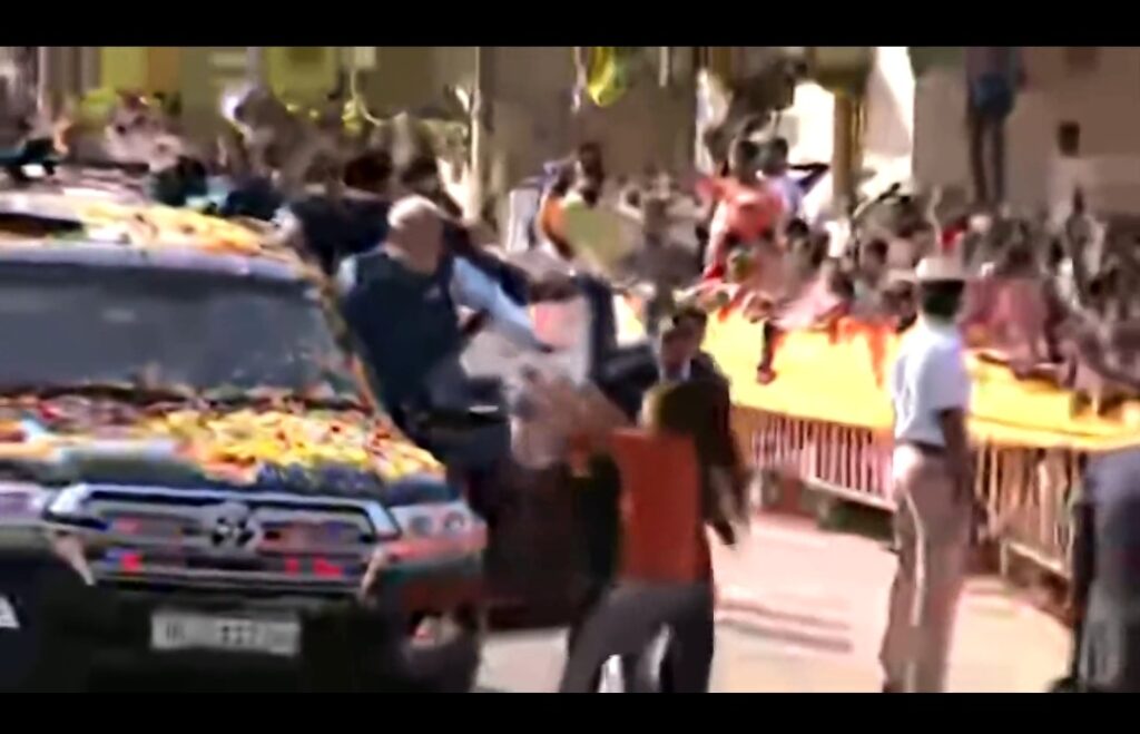 कर्नाटक के हुबली में गुरुवार को प्रधानमंत्री नरेंद्र मोदी की सुरक्षा में बड़ी चूक का मामला सामने आया है। हुबली में युवा महोत्सव का उद्घाटन करने पहुंचे पीएम मोदी रोड शो कर रहे थे, तभी एक युवक दौड़ता हुआ उनकी कार के गेट तक पहुंच गया और उन्हें माला पहनाने की कोशिश करने लगा। अचानक युवक को पीएम के करीब आता देख सुरक्षाकर्मी भी अवाक रह गए। हालांकि सुरक्षाकर्मियों ने समय रहते युवक को रोक लिया और उसे वहां से हटा दिया।हालांकि मोदी ने उस युवक की दी हुई माला स्वीकार की।