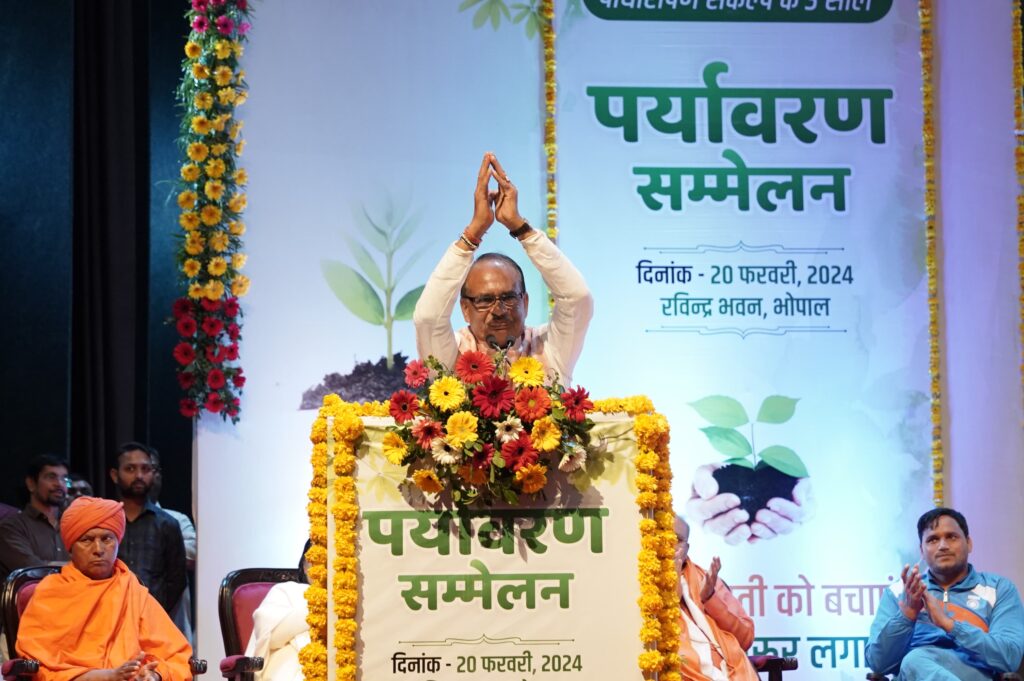 पूर्व मुख्यमंत्री शिवराज सिंह चौहान के प्रतिदिन पौधरोपण के संकल्प को तीन वर्ष पूर्ण होने पर मंगलवार को भोपाल के रविन्द्र भवन में पर्यावरण सम्मेलन आयोजित किया गया। पर्यावरण सम्मेलन से पूर्व स्मार्ट सिटी पार्क में 108 पौधे रौपे गए। सम्मेलन में देश भर की अध्यात्मिक व सामाजिक हस्तियों ने शिरकत की। जिनमें मुख्य रूप से हार्टफुलनेस संस्थान के प्रमुख कमलेश डी.पटेल दाजी, विख्यात पर्यावरणविद् अनिल प्रकाश जोशी जी, गीतकार समीर अंजान उपस्थित रहे। वहीं प्रदेश के मुख्यमंत्री श्री मोहन यादव, उप-मुख्यमंत्री श्री राजेन्द्र शुक्ल और भाजपा प्रदेशाध्यक्ष श्री वीडी शर्मा भी उपस्थित रहे। इस दौरान पूर्व सीएम शिवराज सिंह ने सम्मेलन में उपस्थितजनों को पर्यावरण संरक्षण का संकल्प भी दिलाया और कहा कि, हरे भरे जंगल को देखते हैं तो मन आनंद और प्रसन्नता से भर जाता है, क्योंकि पेड़ नहीं, जिंदगी रौपी है, जीवन रौपा है। पेड़ ही तो जीवन हैं जो हमें ऑक्सिजन देते हैं। जिससे हमें जिंदगी मिलती है। सही बात यह है कि विश्व का कल्याण हो यह भारत का मूल मंत्र है और विश्व का कल्याण तब होगा जब धरती सुरक्षित बचेगी और धरती सुरक्षित बचाने का सबसे बड़ा माध्यम है वृक्षारोपण।