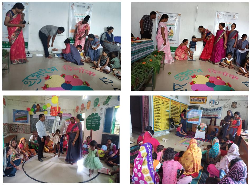 जशपुर : मुख्यमंत्री विष्णु देव साय के निर्देश में महिला बाल विकास विभाग के परियोजना कांसाबेल के समस्त 159 आंगनबाड़ी केन्द्र में वजन त्यौहार का शुभारंभ किया गया है। जिसमें प्रत्येक सेक्टरवार कलस्टर में अधिकारी,कर्मचारियों की वजन निगरानी कराने का आदेश अनुविभागीय अधिकारी (रा.) बगीचा द्वारा बनाये गये है। जिसमें प्रत्येक कलस्टर में आं.बा. केन्द्रों में पोषण माह के साथ वजन त्यौहार का आयोजन किया गया है।