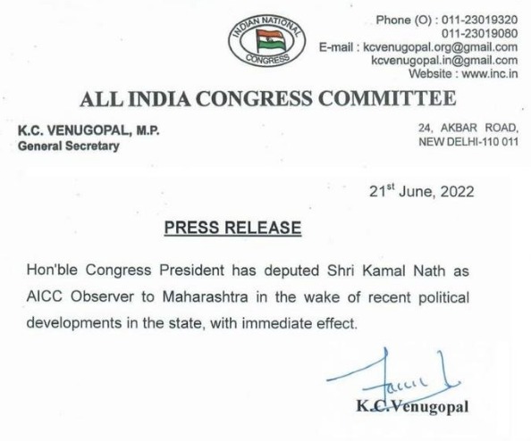 महाराष्ट्र में डैमेज कंट्रोल के लिए मध्य प्रदेश के पूर्व मुख्यमंत्री कमलनाथ कल सुबह मुम्बई के लिए रवाना होंगे। जानकारी के अनुसार दिल्ली से कांग्रेस हाईकमान ने महाराष्ट्र मामले को सुलझाने के लिए कमलनाथ को जिम्मेदारी सौंपी है। इस खबर के वायरल होते ही लोगों की टिप्पणियों ने आग पकड़ी हुई हैं कोई कह रहा है सही निर्णय तो कोई कह रहा है जो मध्यप्रदेश में अपनी सरकार नहीं बचा पाए वो महाराष्ट उद्धव सरकार बचाने जा रहे हैं।