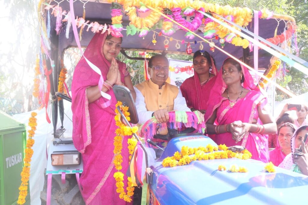 जैत में दिखा सीएम शिवराज का जुदा अंदाज: स्व-सहायता समूह की बहनों के साथ थामा ट्रैक्टर का स्टेयरिंग