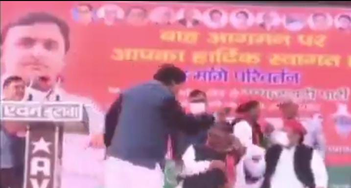 यूपी विधानसभा चुनाव के लिए समाजवादी पार्टी के अध्यक्ष अखिलेश यादव आगरा की बाह विधानसभा सीट से प्रचार करने पहुंचे। इस दौरान मंच पर जो हुआ उसे देखकर लोग दंग रह गए। सभा का थप्पड़ मारने वाला एक वीडियो भी सोशल मीडिया पर वायरल हो रहा है।
