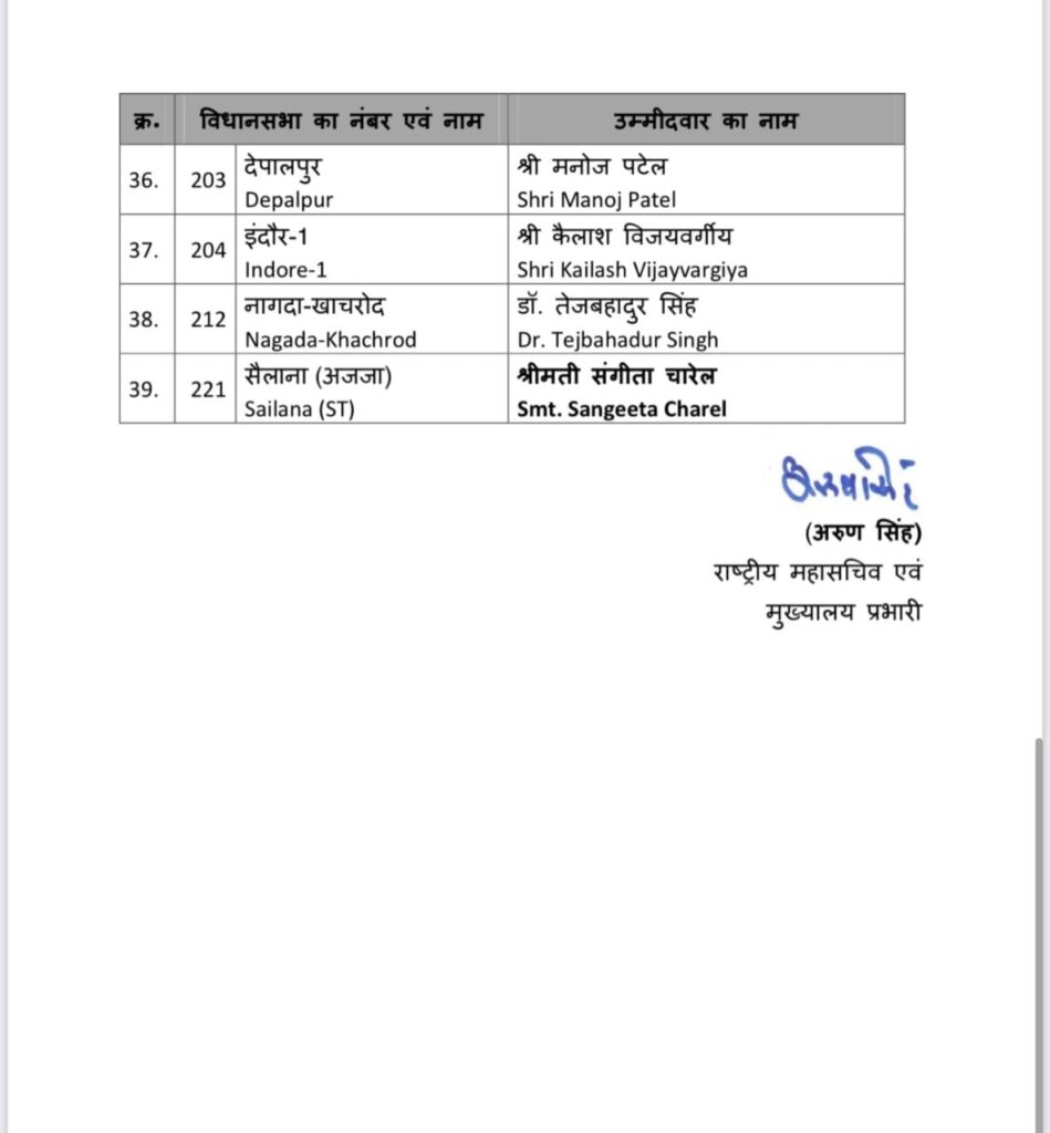 भाजपा ने जारी की मध्यप्रदेश विधानसभा चुनाव 2023 के उम्मीदवारों की दूसरी लिस्ट, यहां देखें लिस्ट