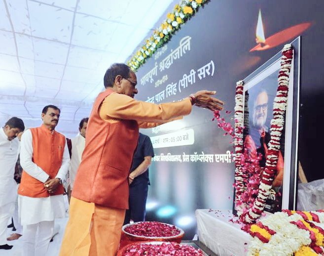 मुख्यमंत्री चौहान ने कहा कि स्व. पुष्पेन्द्र पाल सिंह सामान्य सीट पर बैठक कर ही विद्यार्थियों से बात करते थे। वे सदैव उत्साह से भरे रहते थे और सचमुच में भगवान कृष्ण के सात्विक कार्यकर्ता थे। मुख्यमंत्री चौहान माखनलाल चतुर्वेदी पत्रकारिता एवं संचार विश्वविद्यालय में स्व. सिंह (पीपी सर) की स्मृति में श्रद्धांजलि सभा में शामिल हुए। मुख्यमंत्री चौहान ने स्व. सिंह के चित्र पर माल्यार्पण कर श्रद्धा-सुमन अर्पित किए। चिकित्सा शिक्षा मंत्री विश्वास सारंग, खजुराहो सांसद वी.डी. शर्मा, विधायक, पत्रकार सहित बड़ी संख्या में स्व. पी.पी. सर के शिष्य उपस्थित थे।