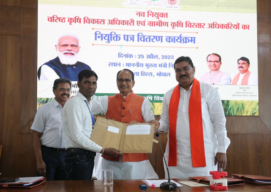 मध्य प्रदेश में इनदिनों मध्य प्रदेश सरकार सरकारी नौकरियों का पिटारा खोलते हुए मध्य प्रदेश और देश के युवाओं को असंख्य अवसर सरकारी नौकरी में आने का दे रही है। इसी क्रम में आज मुख्यमंत्री निवास में आयोजित ग्रामीण कृषि विस्तार अधिकारी एवं वरिष्ठ कृषि विकास अधिकारियों का नियुक्ति पत्र वितरण कार्यक्रम आयोजित किया गया। जिसमें नवनियुक्त ग्रामीण कृषि विस्तार अधिकारी एवं वरिष्ठ कृषि विकास अधिकारियों को नियुक्ति पत्र प्रदान किए।