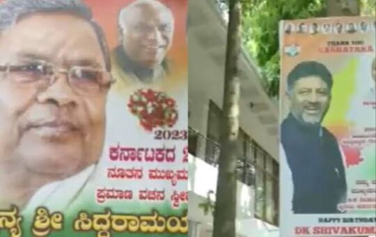 बेंगलुरु: कर्नाटक कांग्रेस अध्यक्ष डी.के. शिवकुमार के समर्थकों ने उनके आवास के बाहर एक पोस्टर लगाया, जिसमें उन्हें कर्नाटक का...