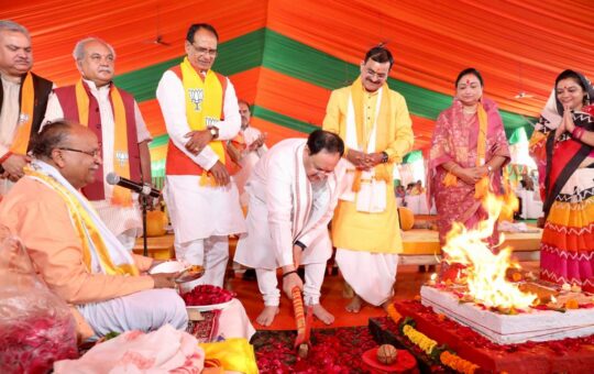 आज भोपाल में मप्र भाजपा कार्यालय का नवीन कार्यालय का भूमि पूजन करने के लिए भाजपा राष्ट्रीय अध्यक्ष जेपी नड्डा...